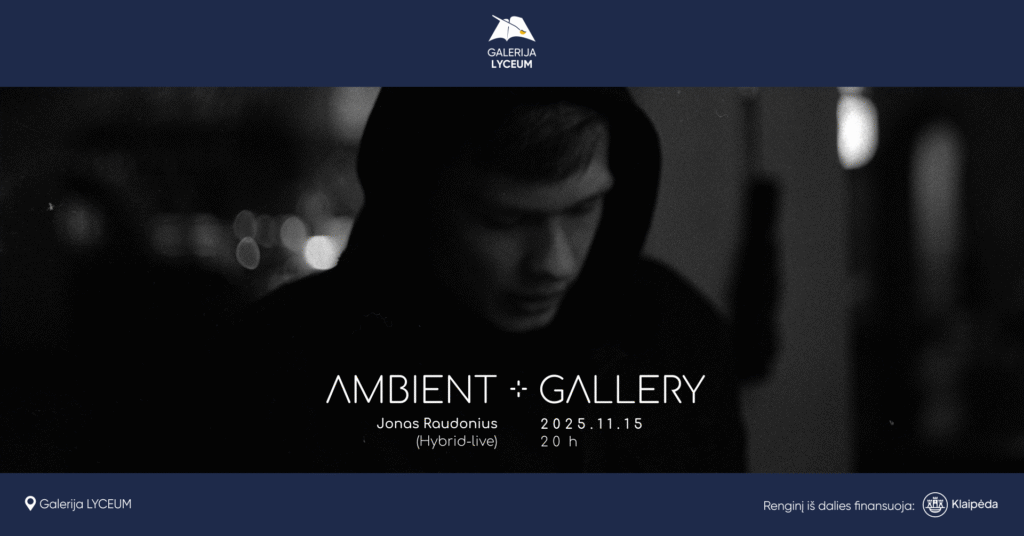 Lapkričio 15 d., 20 val., miestui panirus į tamsą ir rimtį, galerijos LYCEUM erdvę užlies ambiento muzikos atmosfera, kurią hibridinio pasirodymo metu atliks garso menininkas, elektroninės muzikos kūrėjas Jonas Raudonius.