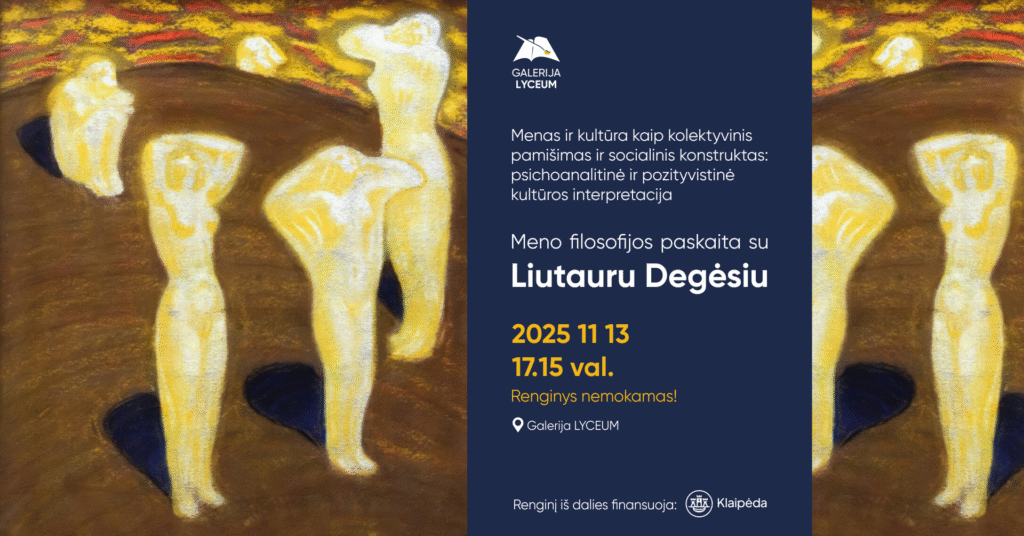 Lapkričio 13 dieną, 17.15 val. galerijoje „LYCEUM” (Danės g. 9, Klaipėda) vyks meno filosofijos paskaita „Menas ir kultūra kaip kolektyvinis pamišimas ir socialinis konstruktas: psichoanalitinė ir pozityvistinė kultūros interpretacija” su poetu, filosofu Liutauru Degėsiu.