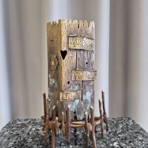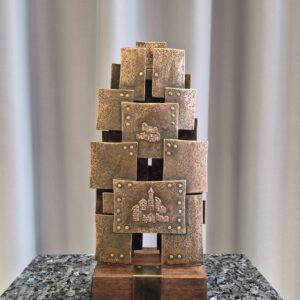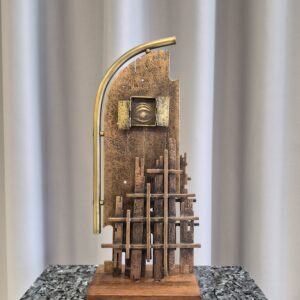 Technika: perdirbtas popierius (360 g), kartono raižinys, medžio plokštė