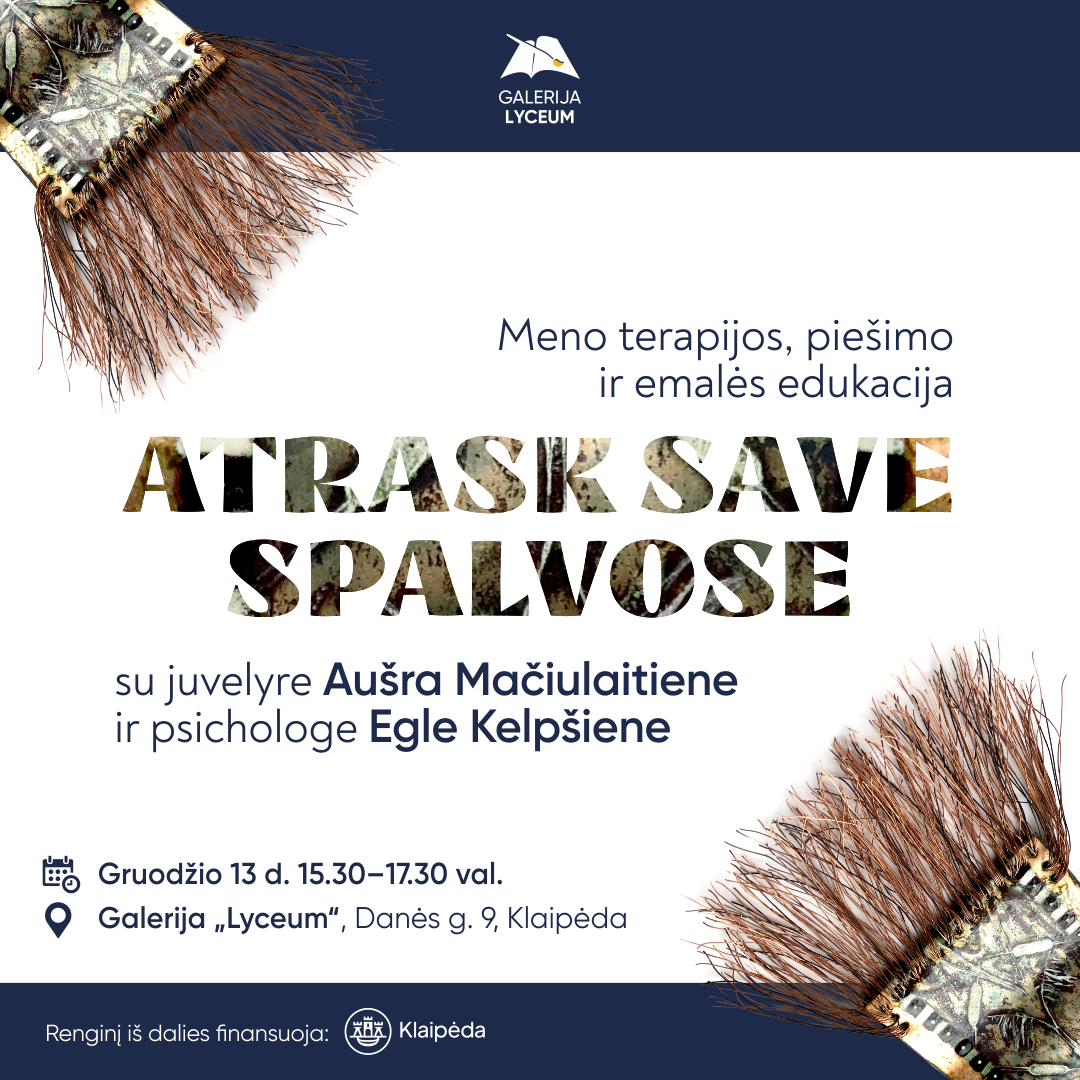 Kartu su psichologe Egle Kelpšiene ir menininke, juvelyre Aušra Mačiulaitiene kviečiame į jaukų ir kūrybišką terapinį užsiėmimą, kuriame nereikia jokių meninių įgūdžių – tik Jūsų buvimo, smalsumo ir noro patirti!